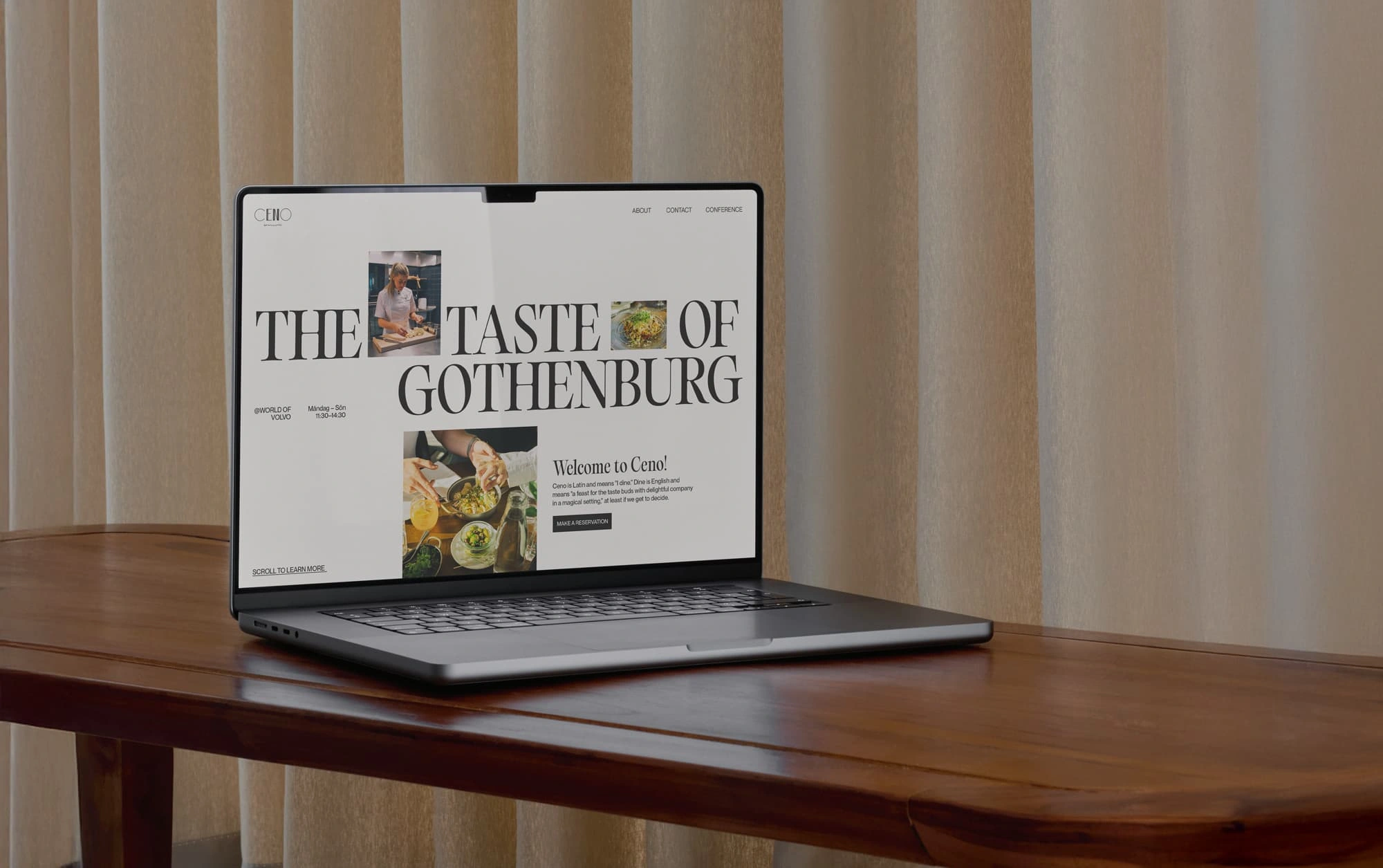 Volvo betyder “jag rullar” på latin. Därför föreslog vi att den nya restaurangen skulle heta CENO — vilket också är latin och betyder “jag dinerar”. Logotypen och den grafiska profilen andas finess och geometrisk symbolik, precis som mycket annat i huset World of Volvo.